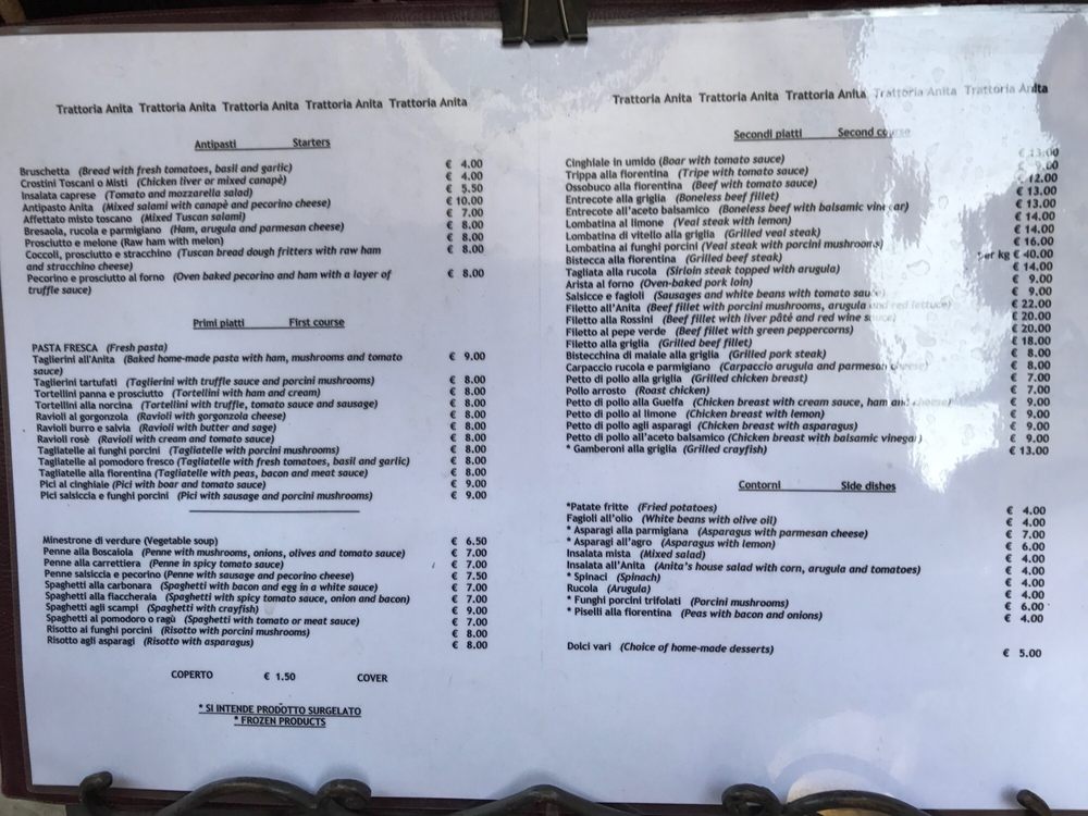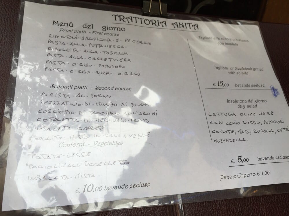 Trattoria Anita Menu